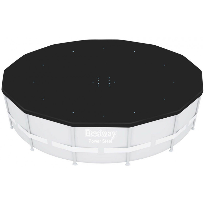 Krycia plachta pre bazén s nafukovacím lemom alebo kovovým rámom, priemerom 396 cm, alebo pre bazén s pevnými stenami s priemerom 360 cm.